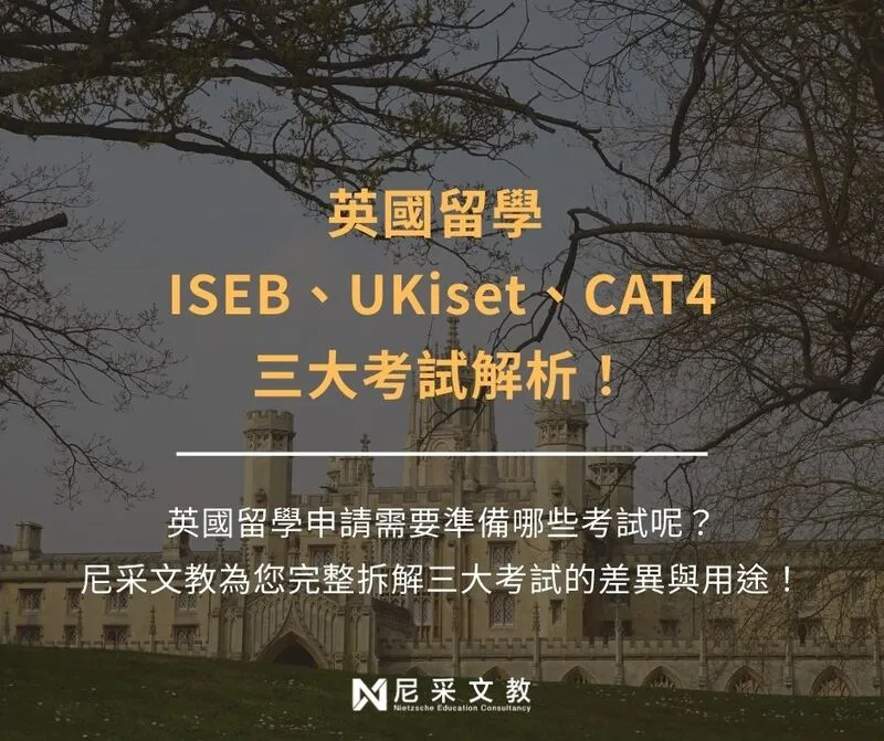 想送孩子進入伊頓、哈羅等英國頂尖寄宿學校,卻聽到ISEB、UKiset、CAT4這些考試一頭霧水?別擔心!尼采文教為您完整拆解這三大考試的差異與用途,幫助家長一次搞懂!