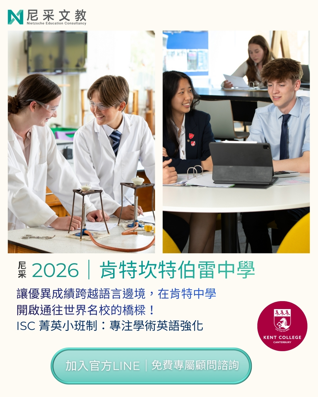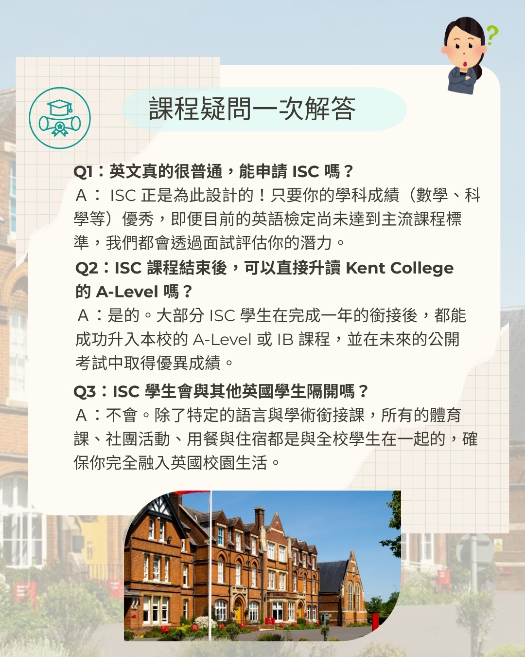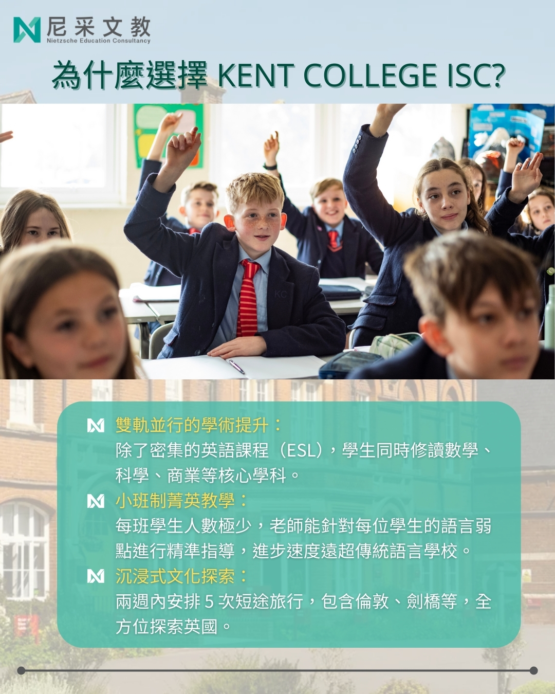 你擁有優異學科成績,卻因英語門檻對英國頂尖名校望而卻步的學生嗎? 為什麼肯特中學的 ISC 課程(International Study Centre)是您的最佳選擇: