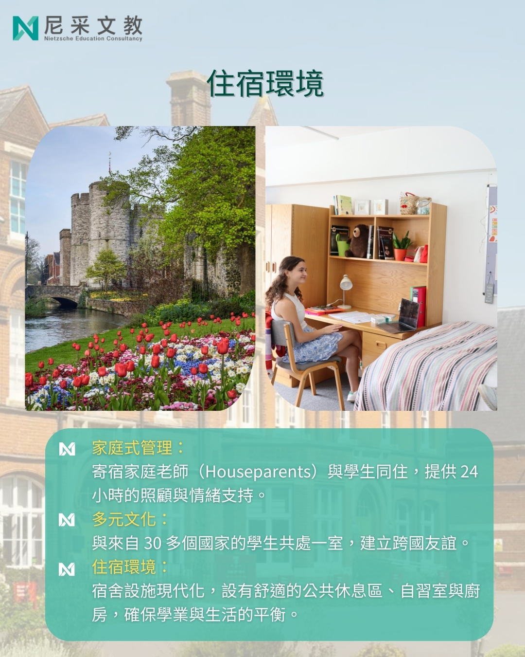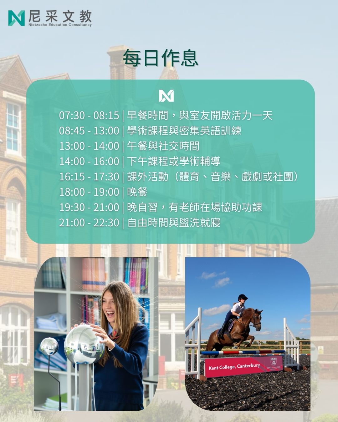 🌍 全方位融入英國校園:除了特定語言課,所有的體育課、社團、用餐與住宿均與全校英國學生在一起,確保完全融入英式生活。
